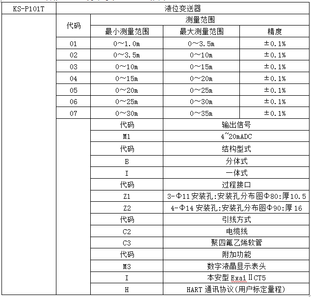 KS-P101T系列液位變送器選用高精度、高穩(wěn)定性擴散硅壓力傳感組件,通過高可靠性的放大電路及精密溫度補償,將被測液體的液位信號轉(zhuǎn)換成4~20mADC標(biāo)準(zhǔn)電信號。高質(zhì)量的傳感器、精湛的封裝技術(shù)以及完善的裝配工藝確保了該產(chǎn)品的優(yōu)異質(zhì)量和最佳性能。